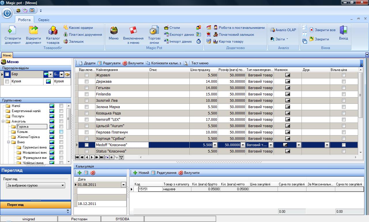 - Вести учет и управлять калькуляциями блюд