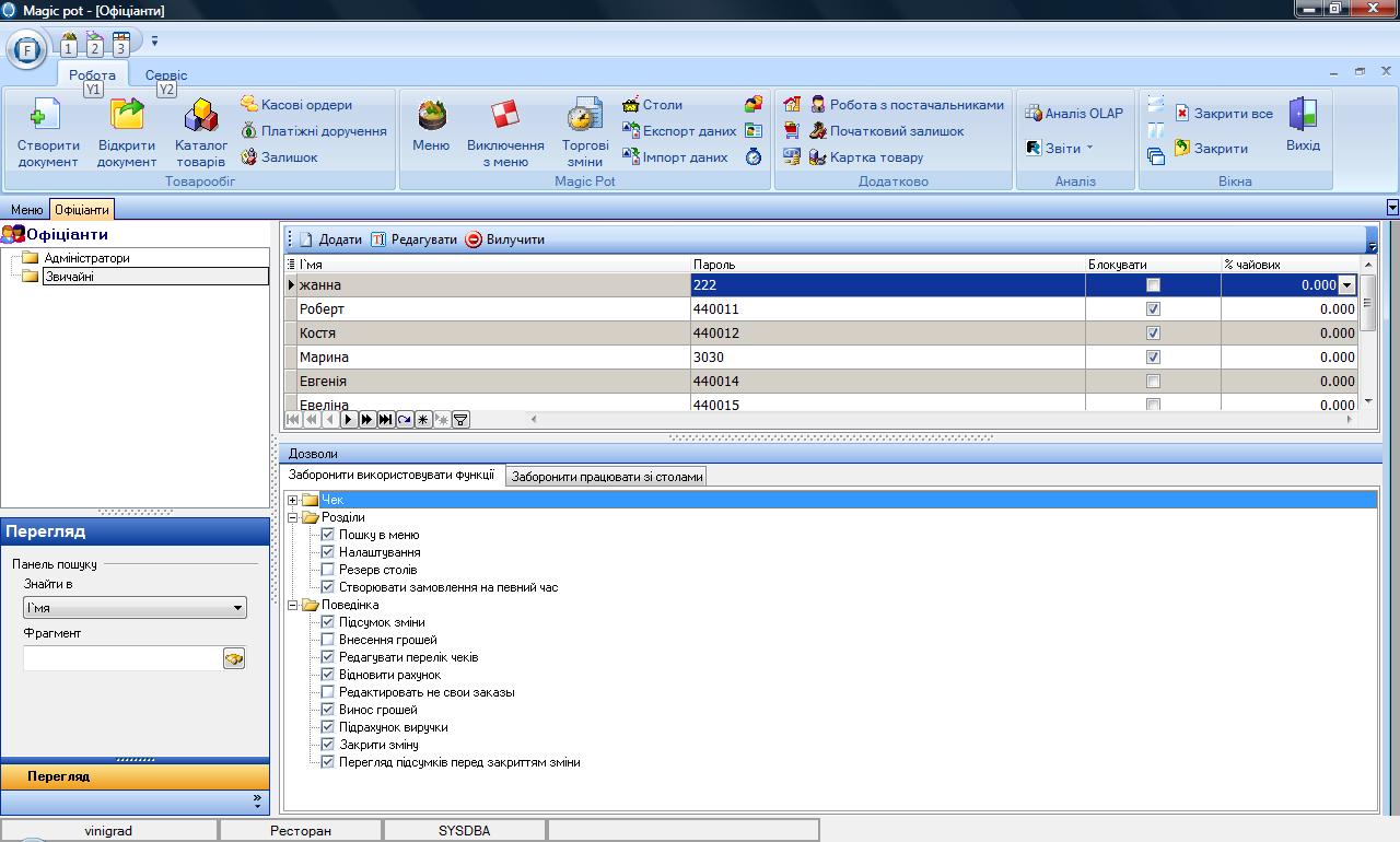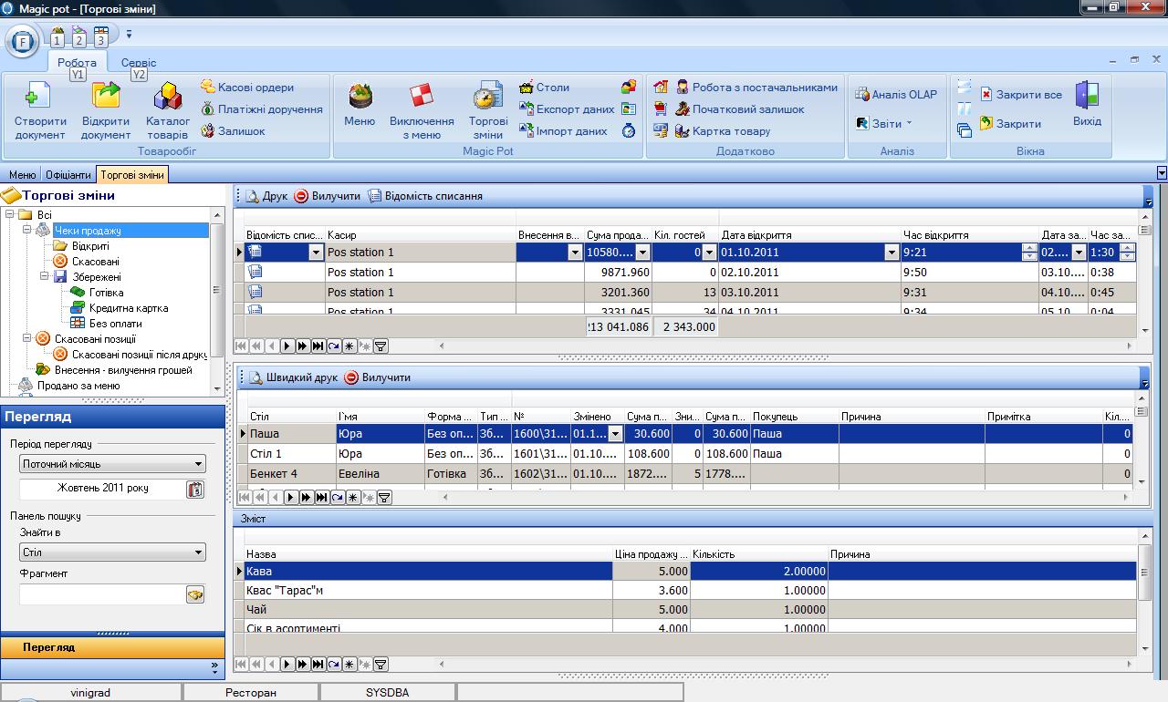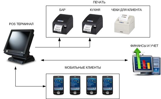 - Управлять торговыми сменами, чеками, действиями официантов