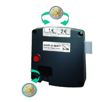 Замок Safe-o-Mat “Schulte- Schlagbaum AG”- механический замок с залогом из одного или двух жетонов. Посетитель не может извлечь ключ из замка пока не вставит жетон. При открытии замка, в зависимости от модификации, замок может вернуть жетон или "проглотить" его.
