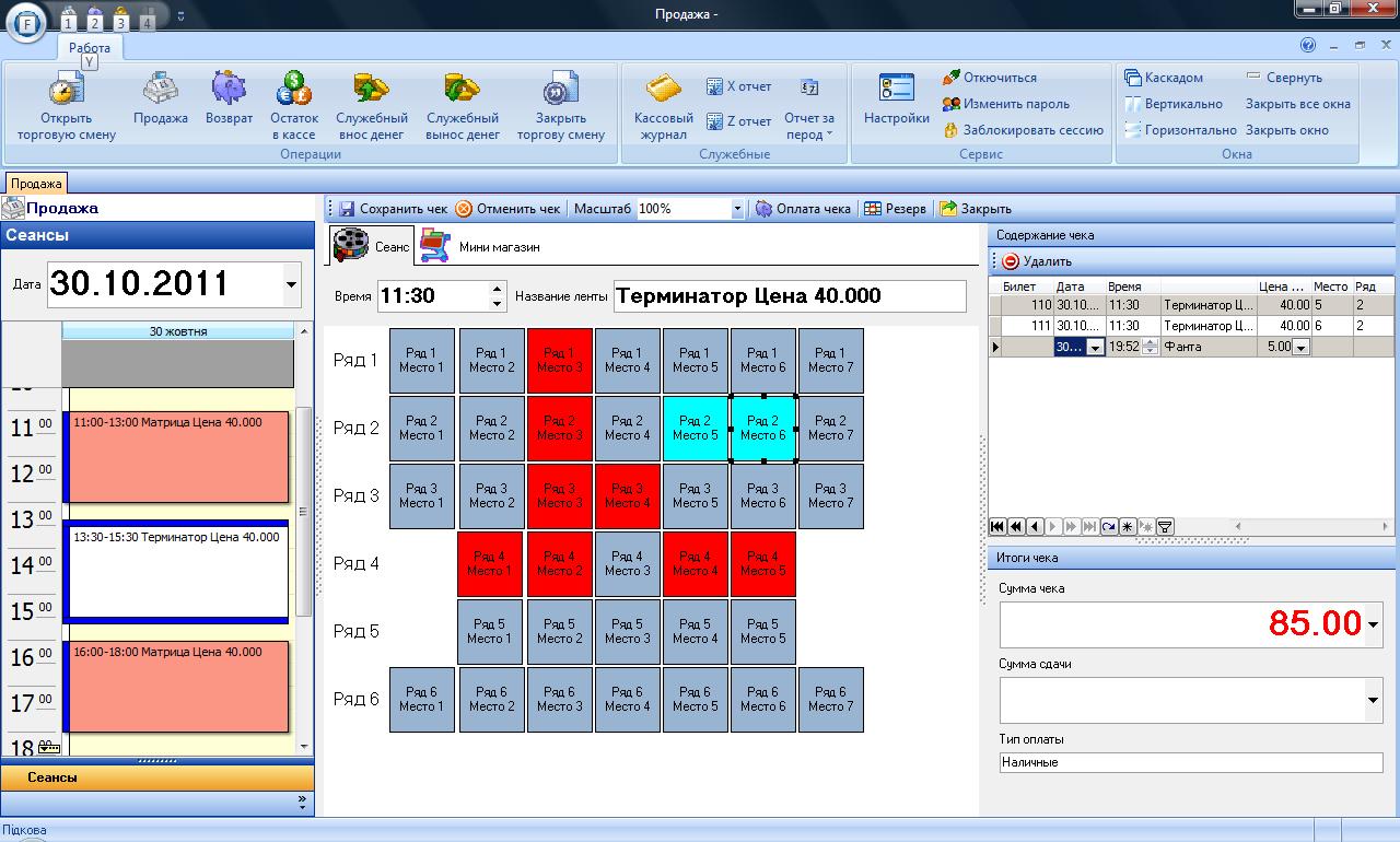 - Составить гибкое расписание сеансов, со спецификой времени сеанса